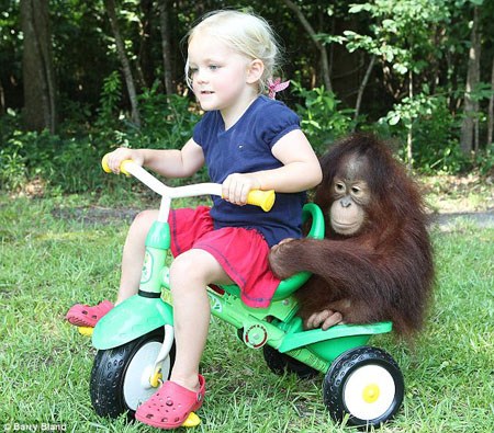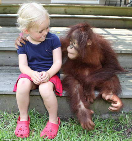据了解,艾米丽和“里什”的初次见面追溯到2008年,当时她的摄影师父亲要到美国佛罗里达州的“濒危和稀有动物保护组织”给那里的动物拍照片,并带上了女儿同去。没想到,年纪相仿的两个小不点儿竟然一见如故,很快就玩到一起了。