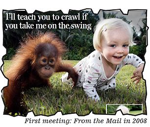 美国小女孩艾米莉和小猩猩“里什”初识时,还都处在刚会爬的婴儿阶段。