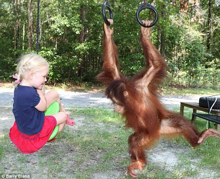 So when the pair were reunited two years later, the three-year-olds spent a blissful afternoon climbing, swinging from rings and tyres, pedalling around on a plastic tricycle and sometimes pausing for a hug。