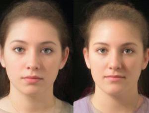 哪一张脸更有吸引力?如果你选择了左边的,就说明你和大部分异性恋男性的审美相同。而这张脸实际上是个“合成脸”,合成对象是八位“小脚”女性。与之相反,右边的脸则是合成了八位“大脚”女性的面孔而成。